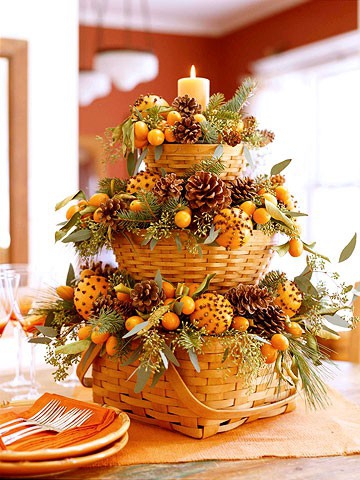Над камином повесьте венок из прутьев (ротанга) или сосновых веток, вплетя в него веточки ароматной травы – базилика, кинзы, остролиста, – конфеты, фрукты, цветы – всё, что придёт вам в голову. При желании, эту красоту можно припорошить искусственным снегом из баллончика.