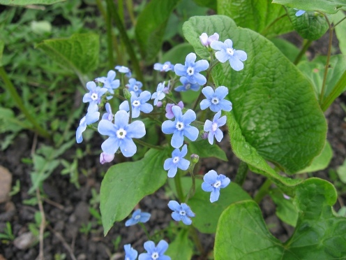 Бруннера – неприхотливое многолетнее растение с ползучими корневищами. В садовом обиходе имеет более распространённое название «глухая незабудка». Такое название обусловлено тем, что цветки бруннеры по форме и цвету напоминают цветки незабудки. Отличие бруннеры от незабудки только в том, что «глазик» у бруннеры белого цвета. Цветение бруннеры обычно происходит в мае или июне в течение 1-2 недель. Для такого растения предпочтительна кисловатая и хорошо обогащенная гумусом почва. Обязательным условием для периода вегетации это обилие влаги.