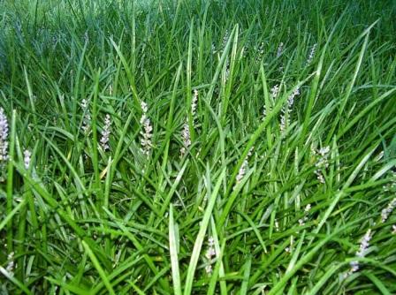 - Лириопе колосистая (Liriope spicata). сорт ‘Silver Dragon’ – прекрасное почвопокровное растение. Этот сорт имеет серебристо-белые листья и цветки оттенка лаванды. Время цветения август-сентябрь.